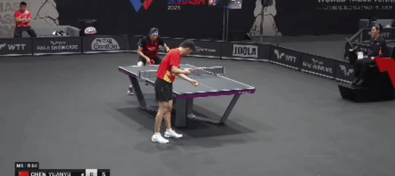 在第一局比赛中,陈垣宇面对皮切福德较强的相持能力,一开始显得并不自如。从局中6-6的胶着状态,到局末阶段连续失误,陈垣宇一时无法稳定控住球权,最终以7-11遗憾丢掉第一局。这一局的波动,不仅让对手占据主动,也暴露了陈垣宇台内防守的薄弱环节他的落点控制显得松散,始终未能找到破局之法。