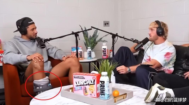 从这个播客节目中也能看到哈利伯顿的右脚上依旧穿着厚厚的保护靴。哈利伯顿是在北京时间6月24日接受的右脚跟腱修复手术,预计是10-12个月的恢复期,目前距离他手术后已经64天之久,他目前已经不需要拄拐了,可以穿着保护靴行走。