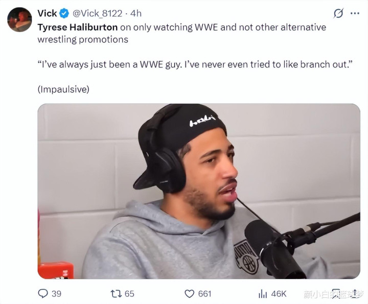 几小时之前,哈利伯顿做客了一档播客节目,他在节目中谈到了前往WWE夏赛现场被嘘的话题,他表示自己是一个WWE比赛的粉丝,但自己对其余种类的摔跤比赛就不是太感兴趣。
