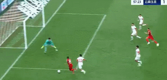 第62分钟,云南玉昆左侧角球机会,约尼查开到禁区中央,皮球被蹭了一下到后点,唐淼直接凌空抽射打穿颜骏凌近角,4-2。