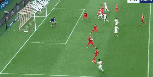 第57分钟,张玉宁禁区线附近起脚射门,球击中立柱。