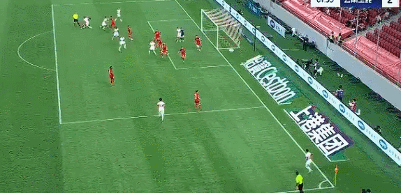 第64分钟,申花反击到前场的传球被对方解围,陈晋一非常机敏的快开边线球,和于汉超完成配合后他直接起脚传向禁区,徐皓阳快速前插头球破门,3-2。