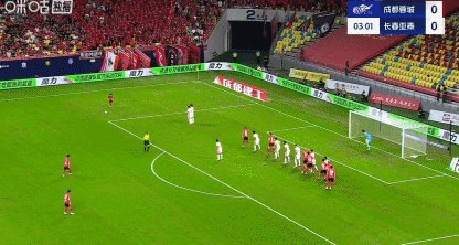 第4分钟,成都前场左侧定位球机会,韦世豪主罚似传似射平抽进禁区,前点罗慕洛虚晃一枪,皮球在门前弹地后直入网窝,1-0。