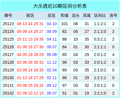 连码分析:上期前区开出连号组合09,10,在最近10期开奖中,有5期奖号包含了连码组合,连码的出现率较低。预计本期连码会开出,关注连码31,32。