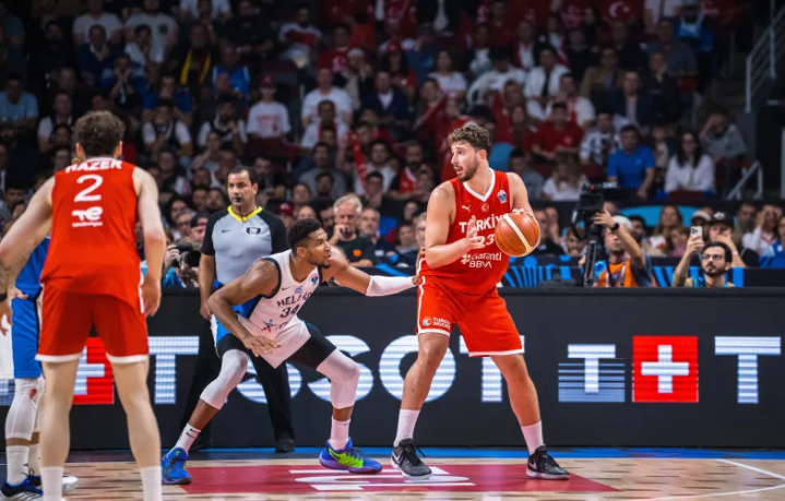 欧洲杯半决赛大战希腊,土耳其12-3火热开场,随后顶住希腊的反扑并且扩大领先,第一节26-16取得10分领先,申京首节5投0中没有得分进账,但抢到5个篮板并且送出3个助攻,奥斯曼尼单节14分火力十足。